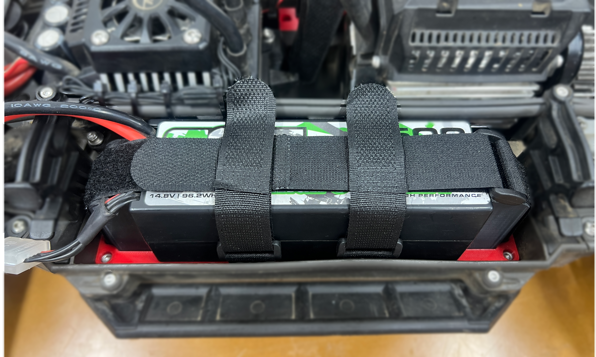 Customise your Traxxas Xmaxx setup with these 3D printed modular battery trays designed for flexibility. Simply provide your battery's length and height, and we'll adjust the retaining blocks to fit perfectly. Swap between different battery sizes using interchangeable retaining blocks on the same base plate—no need for multiple trays. Get the exact fit your batteries deserve.